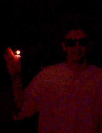 Anyone who's ever struck a match in a dark room (like Jason Gaines, here) knows that the fire at the match tip emits visible light and we do not. Because 98 °F is a lot cooler than the sun, our bodies radiate light at much longer wavelengths than visible light. We radiate at infrared wavelengths, at about 9m almost 20 times longer than the wavelength of visible light. It's just that our eyes are not sensitive to wavelengths that long.